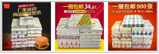 我们拿第一张图为例,如果从“汉堡纸”这个词的权重来看,可以明显的看到第一张比第二和第三张要好一些,因为在首图上有“汉堡”这两个字和一张“汉堡”的图片,然后三张图都有一捆包邮。还差什么呢?一次性!比如第一张图的文案可以改成:厂家直销食品级一次性汉堡纸。